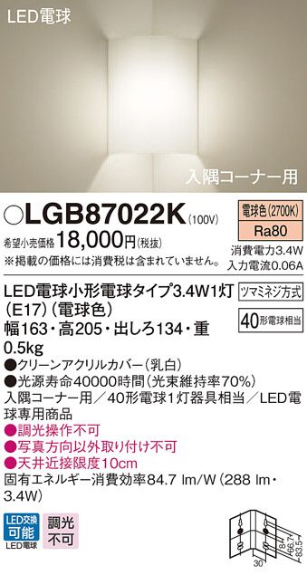 Panasonic LED ¥Ö¥é¥±¥Ã¥È LGB87022K