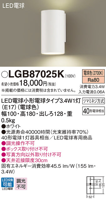 Panasonic LED ¥Ö¥é¥±¥Ã¥È LGB87025K