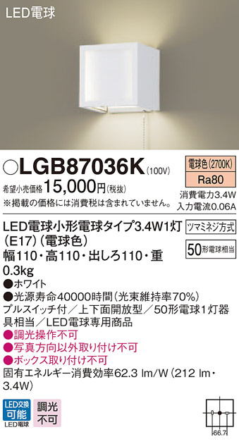 Panasonic LED ¥Ö¥é¥±¥Ã¥È LGB87036K