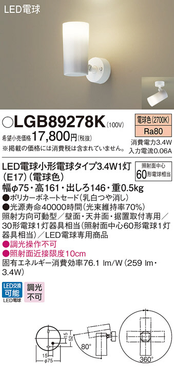 Panasonic LED ¥¹¥Ý¥Ã¥È¥é¥¤¥È LGB89278K
