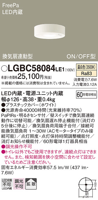 Panasonic ¥·¡¼¥ê¥ó¥°¥é¥¤¥È LGBC58084LE1