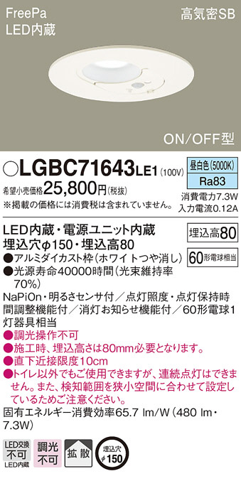 Panasonic ¥À¥¦¥ó¥é¥¤¥È LGBC71643LE1