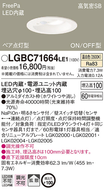 Panasonic ¥À¥¦¥ó¥é¥¤¥È LGBC71664LE1