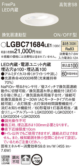 Panasonic ¥À¥¦¥ó¥é¥¤¥È LGBC71684LE1