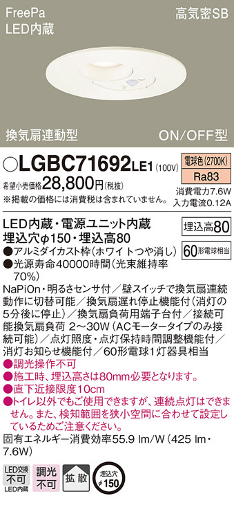 Panasonic ¥À¥¦¥ó¥é¥¤¥È LGBC71692LE1