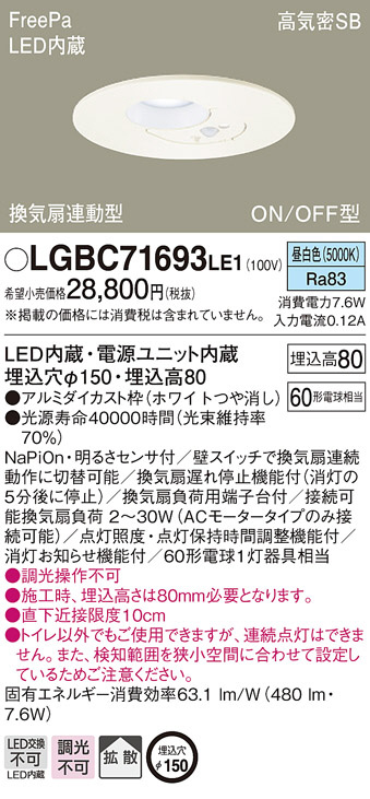 Panasonic ¥À¥¦¥ó¥é¥¤¥È LGBC71693LE1