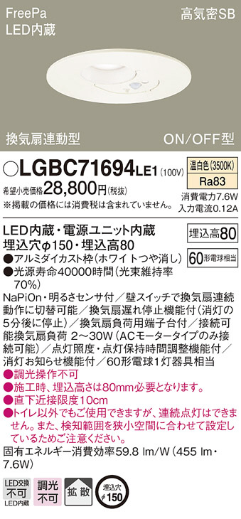Panasonic ¥À¥¦¥ó¥é¥¤¥È LGBC71694LE1