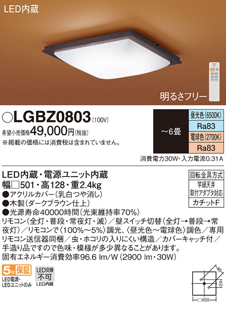 Panasonic LED ¥·¡Ý¥ê¥ó¥°¥é¥¤¥È LGBZ0803