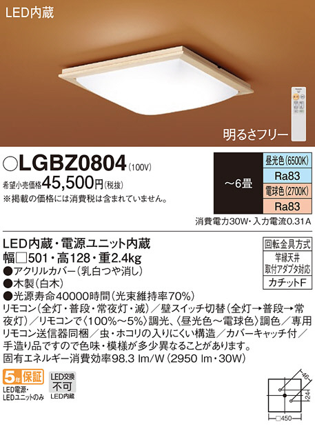 Panasonic LED ¥·¡Ý¥ê¥ó¥°¥é¥¤¥È LGBZ0804
