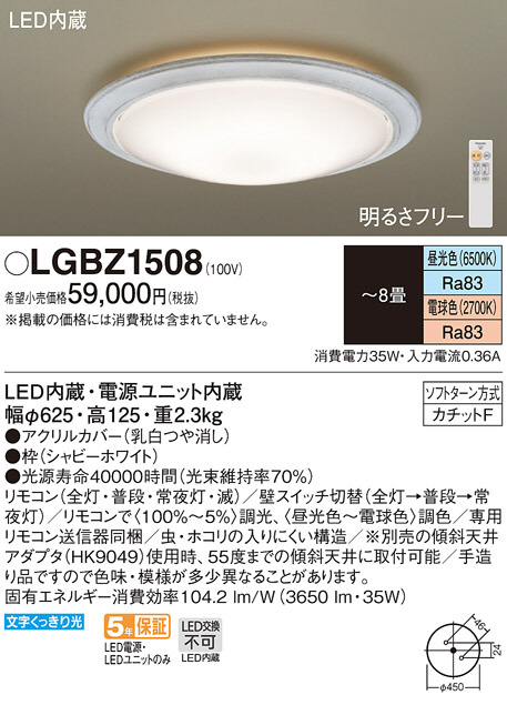 Panasonic LED ¥·¡Ý¥ê¥ó¥°¥é¥¤¥È LGBZ1508
