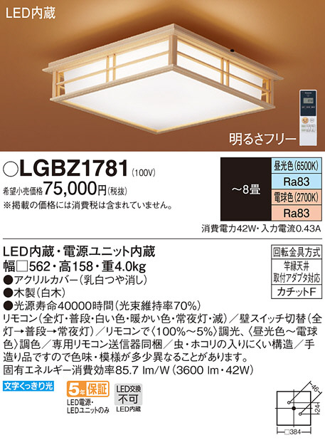 Panasonic LED ¥·¡Ý¥ê¥ó¥°¥é¥¤¥È LGBZ1781
