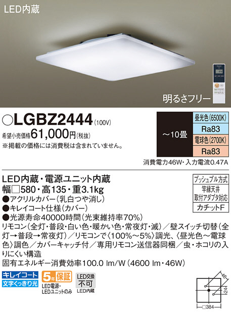 Panasonic LED ¥·¡Ý¥ê¥ó¥°¥é¥¤¥È LGBZ2444