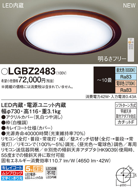 PANASONIC ¥Ñ¥Ê¥½¥Ë¥Ã¥¯ ¥·¡¼¥ê¥ó¥°¥é¥¤¥È LGBZ2483