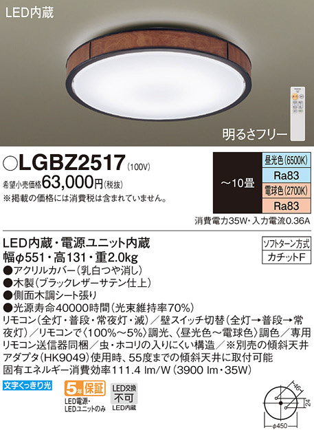 Panasonic LED ¥·¡Ý¥ê¥ó¥°¥é¥¤¥È LGBZ2517