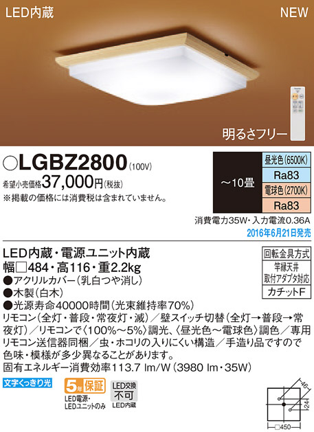 PANASONIC ¥Ñ¥Ê¥½¥Ë¥Ã¥¯ ¥·¡¼¥ê¥ó¥°¥é¥¤¥È LGBZ2800