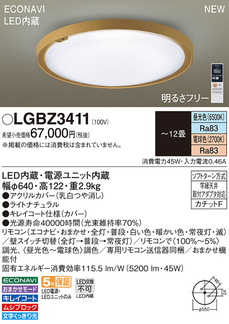 PANASONIC ¥Ñ¥Ê¥½¥Ë¥Ã¥¯ ¥·¡¼¥ê¥ó¥°¥é¥¤¥È LGBZ3411