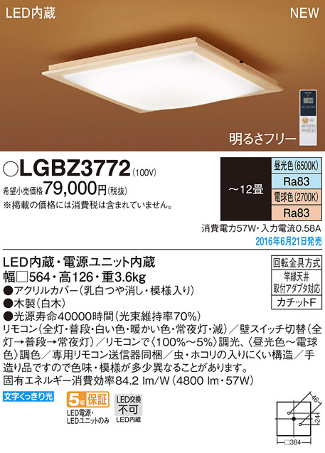 PANASONIC ¥Ñ¥Ê¥½¥Ë¥Ã¥¯ ¥·¡¼¥ê¥ó¥°¥é¥¤¥È LGBZ3772