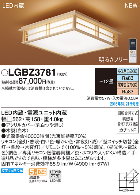 PANASONIC ¥Ñ¥Ê¥½¥Ë¥Ã¥¯ ¥·¡¼¥ê¥ó¥°¥é¥¤¥È LGBZ3781