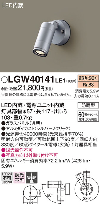 Panasonic ¥¨¥¯¥¹¥Æ¥ê¥¢¥¹¥Ý¥Ã¥È¥é¥¤¥È LGW40141LE1