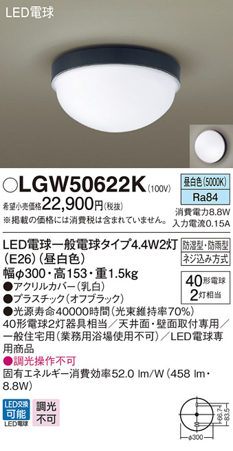 Panasonic LED ¥¨¥¯¥¹¥Æ¥ê¥¢¡¦¥¢¥¦¥È¥É¥¢ LGW50622K