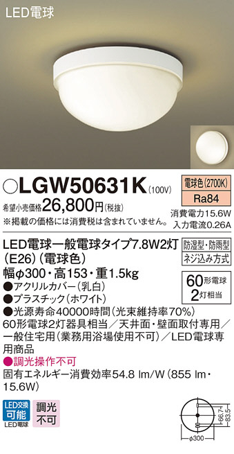 Panasonic LED ¥Ð¥¹¥ë¡Ý¥à¥é¥¤¥È LGW50631K