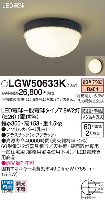Panasonic LED ¥¨¥¯¥¹¥Æ¥ê¥¢¡¦¥¢¥¦¥È¥É¥¢ LGW50633K