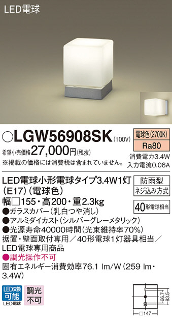 Panasonic LED ¥¨¥¯¥¹¥Æ¥ê¥¢¡¦¥¢¥¦¥È¥É¥¢ LGW56908SK