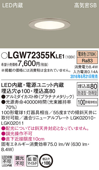 PANASONIC ¥Ñ¥Ê¥½¥Ë¥Ã¥¯ ¥Ð¥¹¥ë¡¼¥à¥é¥¤¥È LGW72355KLE1