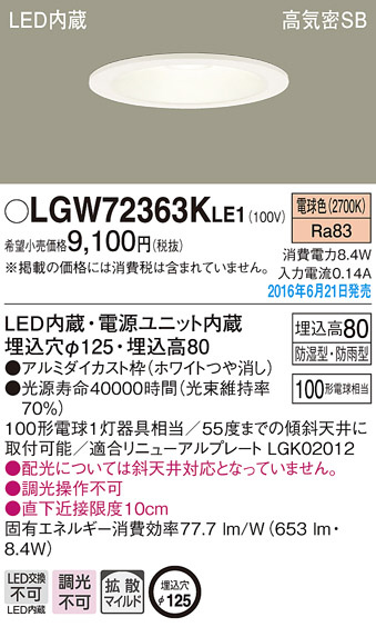 PANASONIC ¥Ñ¥Ê¥½¥Ë¥Ã¥¯ ¥Ð¥¹¥ë¡¼¥à¥é¥¤¥È LGW72363KLE1