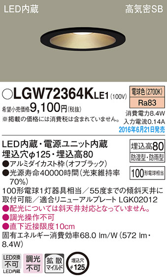 PANASONIC ¥Ñ¥Ê¥½¥Ë¥Ã¥¯ ¥Ð¥¹¥ë¡¼¥à¥é¥¤¥È LGW72364KLE1