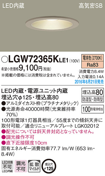 PANASONIC ¥Ñ¥Ê¥½¥Ë¥Ã¥¯ ¥Ð¥¹¥ë¡¼¥à¥é¥¤¥È LGW72365KLE1