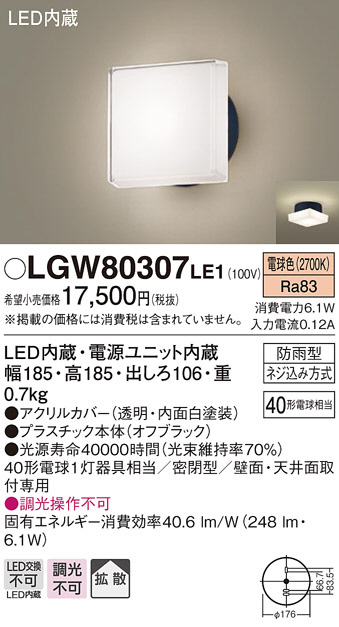 Panasonic ¥¨¥¯¥¹¥Æ¥ê¥¢¥é¥¤¥È LGW80307LE1