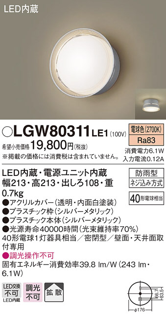 Panasonic ¥¨¥¯¥¹¥Æ¥ê¥¢¥é¥¤¥È LGW80311LE1