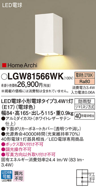 Panasonic ¥¨¥¯¥¹¥Æ¥ê¥¢¥é¥¤¥È LGW81566WK