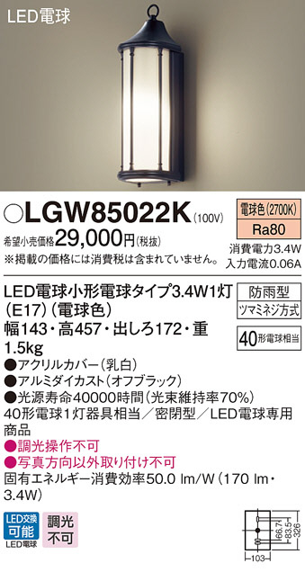 Panasonic ¥¨¥¯¥¹¥Æ¥ê¥¢¡¦¥¢¥¦¥È¥É¥¢ LGW85022K