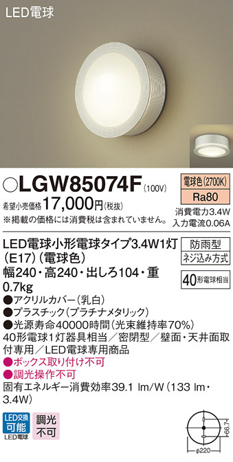 Panasonic ¥¨¥¯¥¹¥Æ¥ê¥¢¡¦¥¢¥¦¥È¥É¥¢ LGW85074F