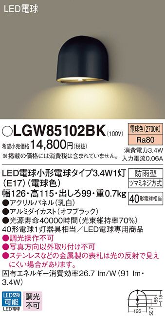 Panasonic LED ¥¨¥¯¥¹¥Æ¥ê¥¢¡¦¥¢¥¦¥È¥É¥¢ LGW85102BK