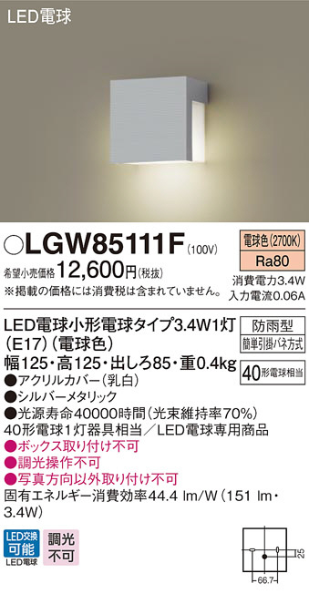 Panasonic ¥¨¥¯¥¹¥Æ¥ê¥¢¡¦¥¢¥¦¥È¥É¥¢ LGW85111F