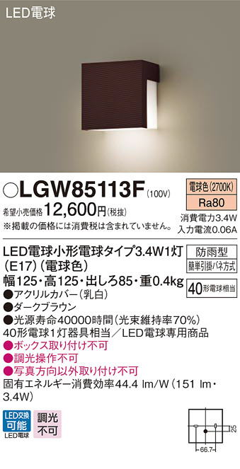 Panasonic ¥¨¥¯¥¹¥Æ¥ê¥¢¡¦¥¢¥¦¥È¥É¥¢ LGW85113F