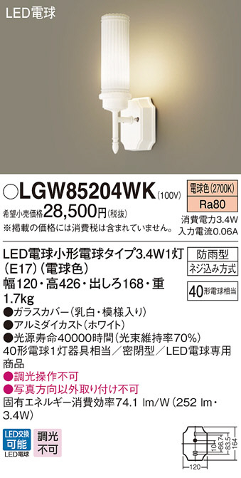 Panasonic LED ¥¨¥¯¥¹¥Æ¥ê¥¢¡¦¥¢¥¦¥È¥É¥¢ LGW85204WK