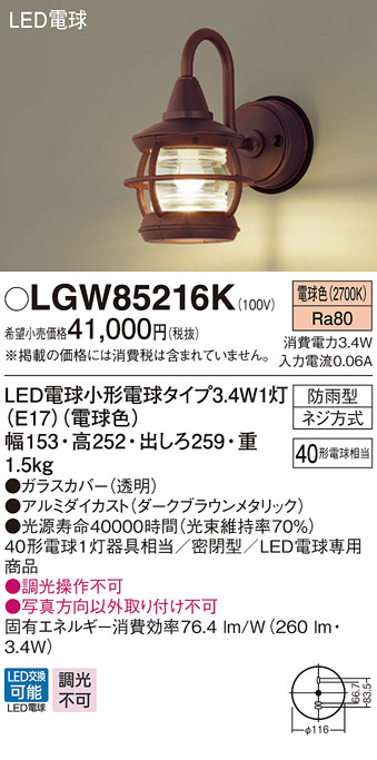 Panasonic ¥¨¥¯¥¹¥Æ¥ê¥¢¡¦¥¢¥¦¥È¥É¥¢ LGW85216K
