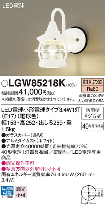 Panasonic ¥¨¥¯¥¹¥Æ¥ê¥¢¡¦¥¢¥¦¥È¥É¥¢ LGW85218K