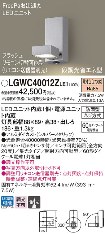 PANASONIC ¥Ñ¥Ê¥½¥Ë¥Ã¥¯ ¥¨¥¯¥¹¥Æ¥ê¥¢¡¦¥¢¥¦¥È¥É¥¢ LGWC40012ZLE1
