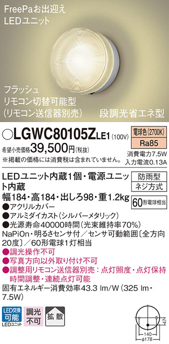 PANASONIC ¥Ñ¥Ê¥½¥Ë¥Ã¥¯ ¥¨¥¯¥¹¥Æ¥ê¥¢¡¦¥¢¥¦¥È¥É¥¢ LGWC80105ZLE1