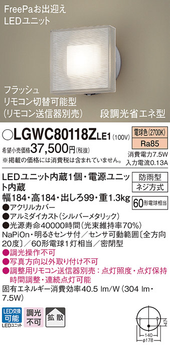 PANASONIC ¥Ñ¥Ê¥½¥Ë¥Ã¥¯ ¥¨¥¯¥¹¥Æ¥ê¥¢¡¦¥¢¥¦¥È¥É¥¢ LGWC80118ZLE1