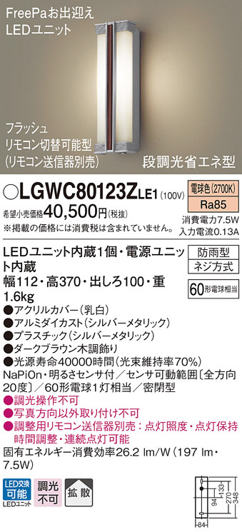 PANASONIC ¥Ñ¥Ê¥½¥Ë¥Ã¥¯ ¥¨¥¯¥¹¥Æ¥ê¥¢¡¦¥¢¥¦¥È¥É¥¢ LGWC80123ZLE1