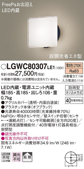 Panasonic ¥¨¥¯¥¹¥Æ¥ê¥¢¥é¥¤¥È LGWC80307LE1