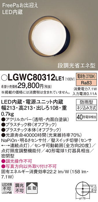 Panasonic ¥¨¥¯¥¹¥Æ¥ê¥¢¥é¥¤¥È LGWC80312LE1