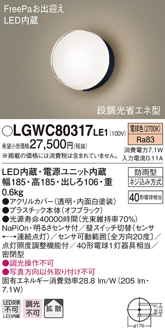 Panasonic ¥¨¥¯¥¹¥Æ¥ê¥¢¥é¥¤¥È LGWC80317LE1