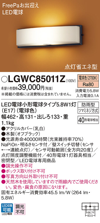 Panasonic LED ¥¨¥¯¥¹¥Æ¥ê¥¢¡¦¥¢¥¦¥È¥É¥¢ LGWC85011Z
